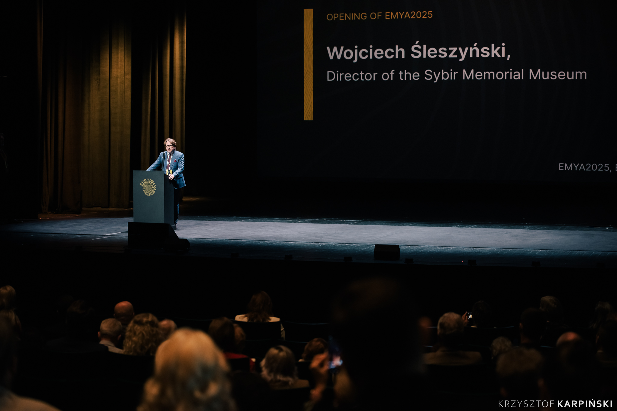 The ceremonial opening of the EMYA2025 Conference took place on 22 May 2025 at the Podlasie Opera and Philharmonic in Białystok. The event began with welcoming remarks from the organisers and hosts, including representatives of the European Museum Forum, the Sybir Memorial Museum, local and regional authorities, as well as the Ministry of Culture and National Heritage.