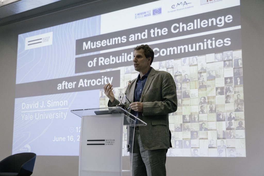 Prof. Simon focused on the sensitive and complex task of rebuilding trust among communities affected by extreme violence. He emphasized that institutions like the Sybir Memorial Museum serve not only educational purposes but also therapeutic ones. Drawing on examples from Rwanda to the Balkans, he illustrated how museums have become platforms for dialogue and reconciliation in societies once fractured by conflict.