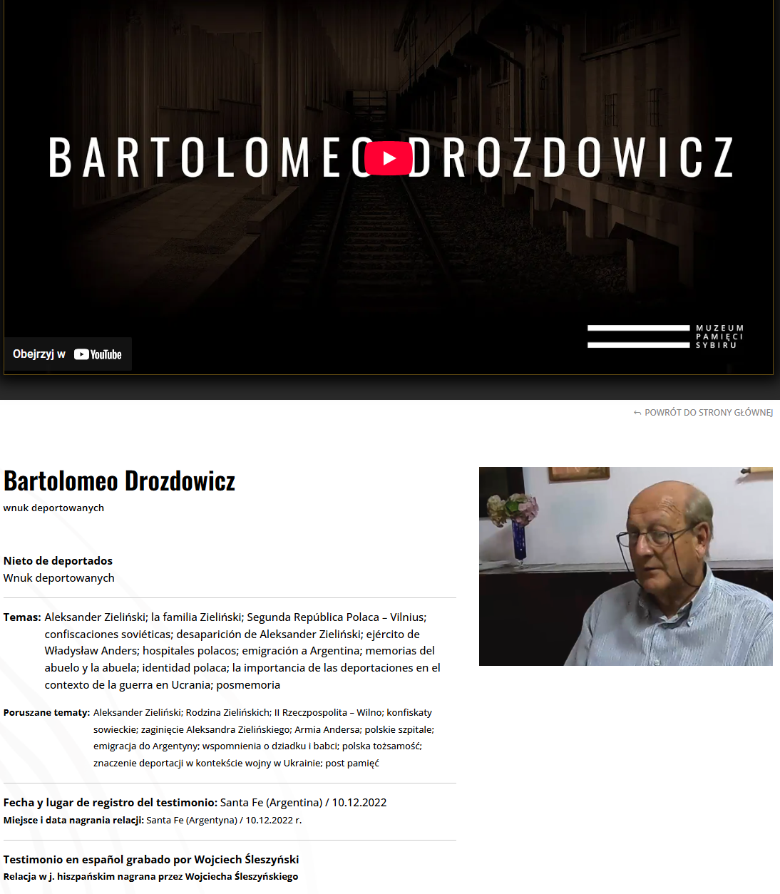 “The interviews published on the platform do not just explore themes of history. Thanks to these direct conversations, the recordings are a record of personal experiences of people traumatised by Siberia. They also serve as a powerful means of preserving the memory of these events for future generations. Oral history – recording, preservation, and interpretation of historical information based on the personal experiences of Sybiraks, as well as those of the second and third generations scattered around the world – is today more important than ever. It is an integral part in gaining a fuller understanding of the issues related to Siberia: understanding the collective experience and trauma of Sybir. And this is what our Museum deals with.”