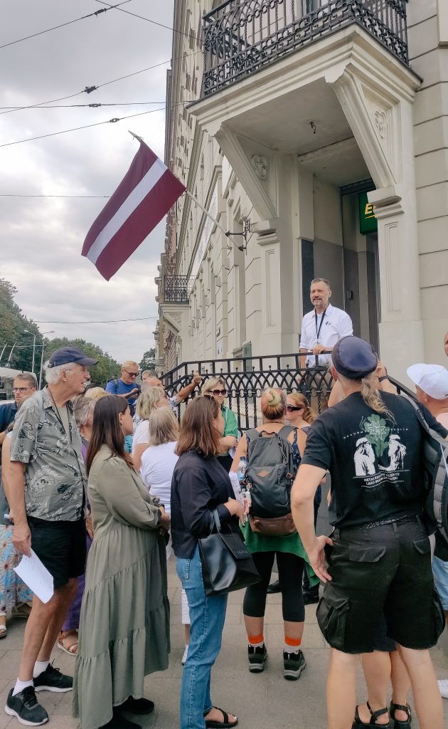 Zespół Muzeum Okupacji Łotwy przygotował liczącą 17 punktów trasę, podczas której mogliśmy odwiedzić miejsca związane z sowiecką i niemiecką okupacją Łotwy, a także poznać losy Łotyszek i Łotyszy w okresie II wojny światowej.