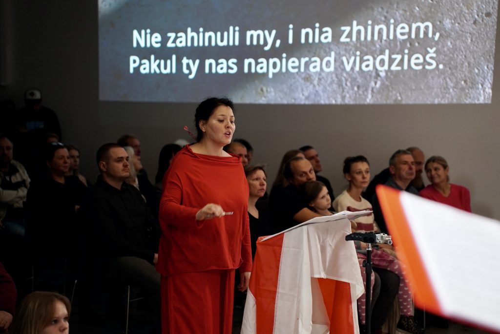 Аудиовизуальный зал Музея памяти Сибири был заполнен до отказа, а те, кто не смог поместиться внутри, стояли в коридорах и слушали белорусские песни вперемежку с краткими биографиями убитых писателей и фрагментами их стихов. Это был незабываемый вечер памяти.