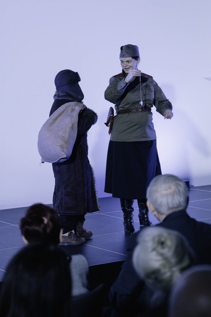 Совместный вечер начался со спектакля под названием «Сиротский дом» (акт I) в исполнении театральной группы Слуги Ее Величества в постановке Петра Клингера. Представление, в котором главные роли исполняли дети, было чрезвычайно трогательной историей о судьбе польских сирот, спасенных Ганкой Ордонувной, звездой довоенной эстрады. История перенесла зрителей в 1941 год, когда после заключения Сикорско-Майского соглашения тысячи детей покинули места принудительного поселения в Сибири. Многие из них попали под опеку Ордонувны, которая взяла их под опеку в польском детском доме, и вскоре они вместе уехали из СССР в Ашхабад. Спектакль был дополнен живой музыкой и красивой игрой света. Зрители смогли услышать трогательные мелодии довоенного периода. Музыка не только подчеркивала эмоциональные моменты, но и помогала создать напряжение и повествование. Выступление молодых артистов было встречено с благодарностью и эмоциями зрителей и особенно Сибиряков, для которых это было путешествие в прошлое, к болезненным, но важным воспоминаниям.