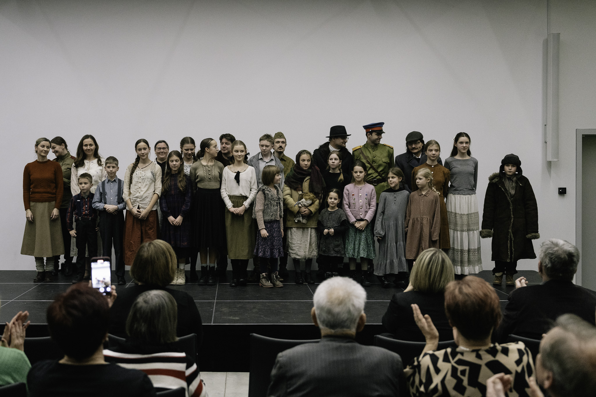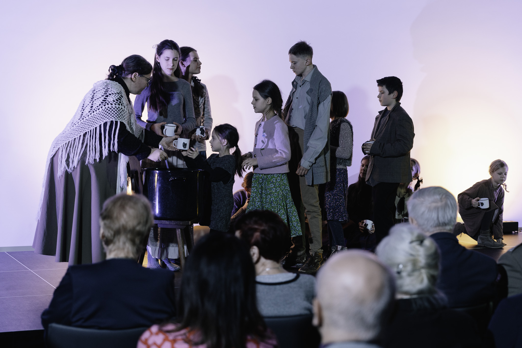 Совместный вечер начался со спектакля под названием «Сиротский дом» (акт I) в исполнении театральной группы Слуги Ее Величества в постановке Петра Клингера. Представление, в котором главные роли исполняли дети, было чрезвычайно трогательной историей о судьбе польских сирот, спасенных Ганкой Ордонувной, звездой довоенной эстрады. История перенесла зрителей в 1941 год, когда после заключения Сикорско-Майского соглашения тысячи детей покинули места принудительного поселения в Сибири. Многие из них попали под опеку Ордонувны, которая взяла их под опеку в польском детском доме, и вскоре они вместе уехали из СССР в Ашхабад. Спектакль был дополнен живой музыкой и красивой игрой света. Зрители смогли услышать трогательные мелодии довоенного периода. Музыка не только подчеркивала эмоциональные моменты, но и помогала создать напряжение и повествование. Выступление молодых артистов было встречено с благодарностью и эмоциями зрителей и особенно Сибиряков, для которых это было путешествие в прошлое, к болезненным, но важным воспоминаниям.